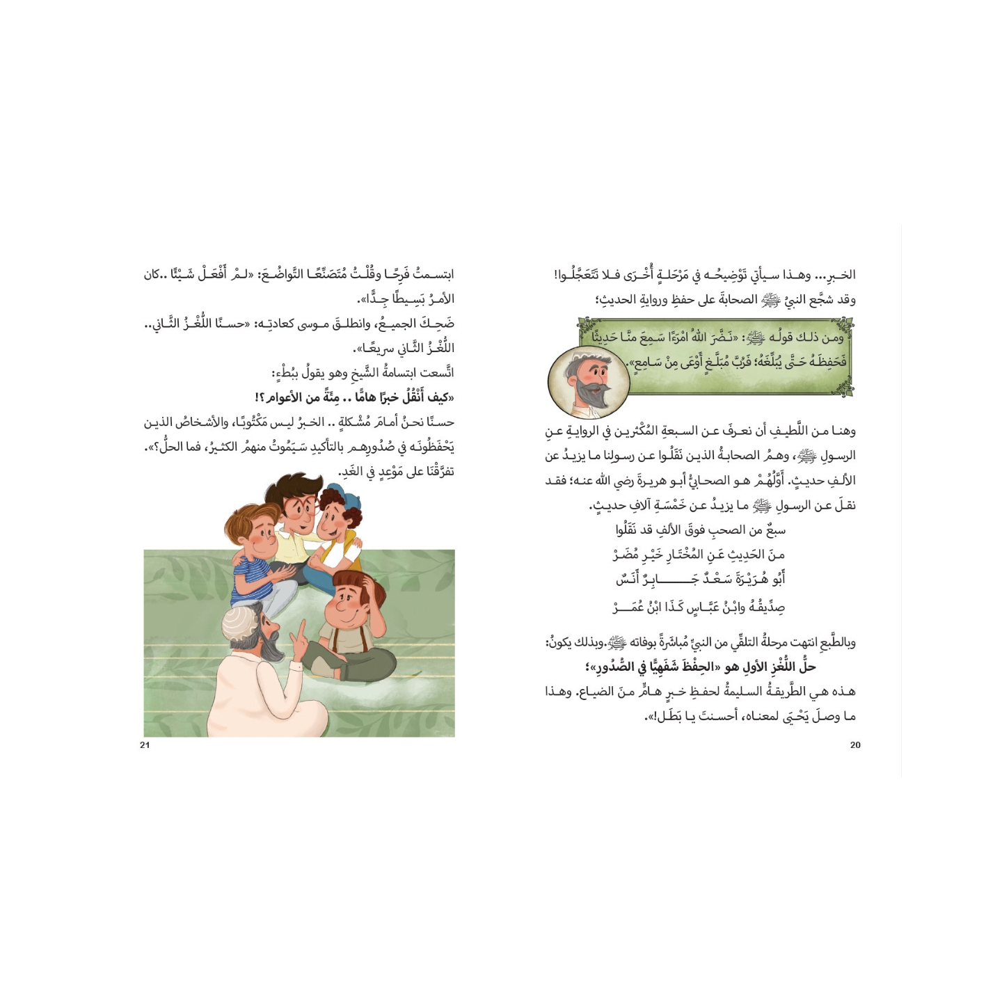 رحلة عبر الزمن لأكثر من ألف عام، تقدم للأطفال مقدمة مبسطة في علم الحديث، يهدف هذا الكتاب إلى تقديم مقدمة مبسّطة في علم الحديث، وشرح الكيفية التي نُقلت بها أقوال النبي محمد ﷺ عبر القرون حتى وصلت إلينا.