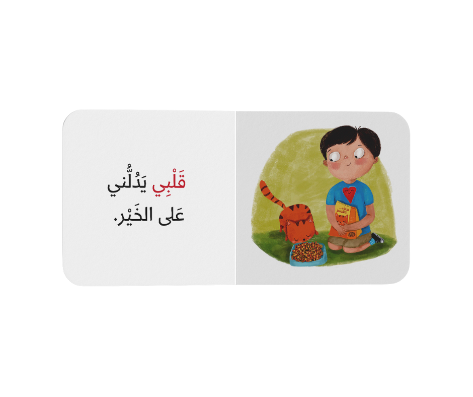 يعرف الكتاب الطفل بأهمية القلب وأنه مصدر الأحاسيس والمشاعر وهو أيضًا كينونة الخير والشر في الإنسان
