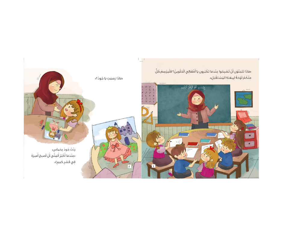 تحلم جود الصغيرة أن تصبح أميرة وتسكن قصرًا، فهل يتحقق حلمها؟ قصة لطيفة تعلّم الأطفال أن أعظم قصور تنتظر المؤمنين في الجنة، وأن الطريق إليها هو باتباع سنة الرسول ﷺ، مقتدين بأمنا خديجة رضي الله عنها