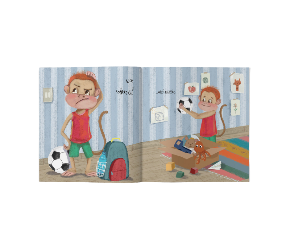 يبحث القرد عن حذائه في كل مكان.. فيلتقي بأصدقائه ويساعدونه في البحث.. فأين اختفى حذاؤه؟