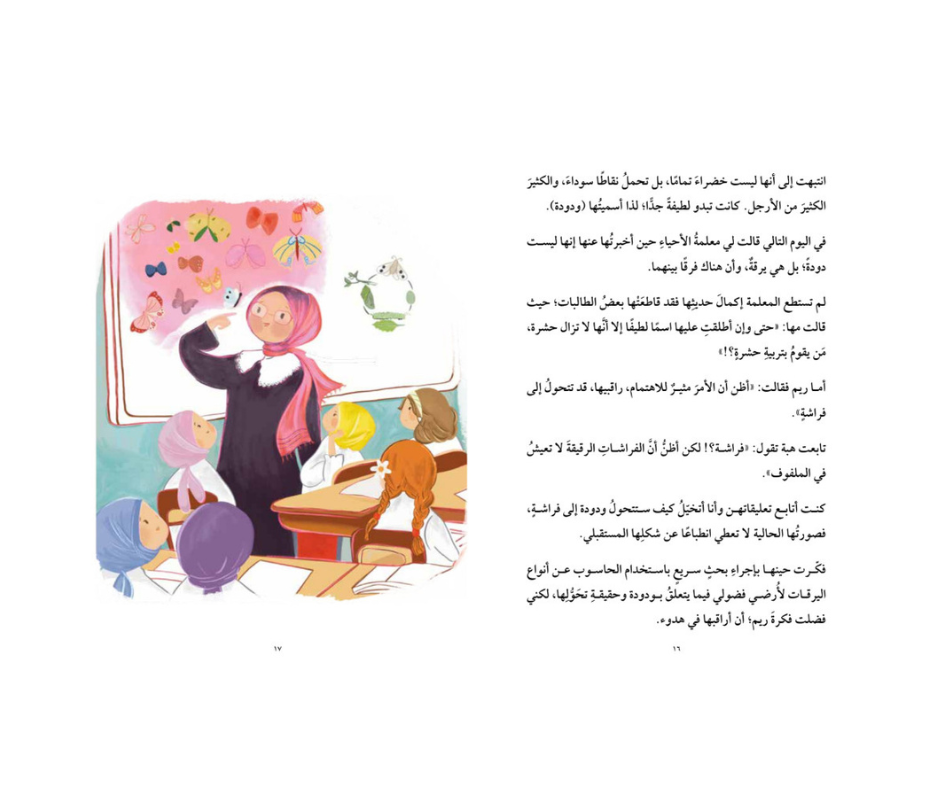 من خلال الأحداث والمواقف المتتالية لها ولصديقاتها، تتعرف روان على معنى البلوغ وتلاحظ أوجه التشابه بينها وبين تلك اليرقة التي دخلت إلى شرنقتها لتخرج بعد مدة فراشة بيضاء جميلة.