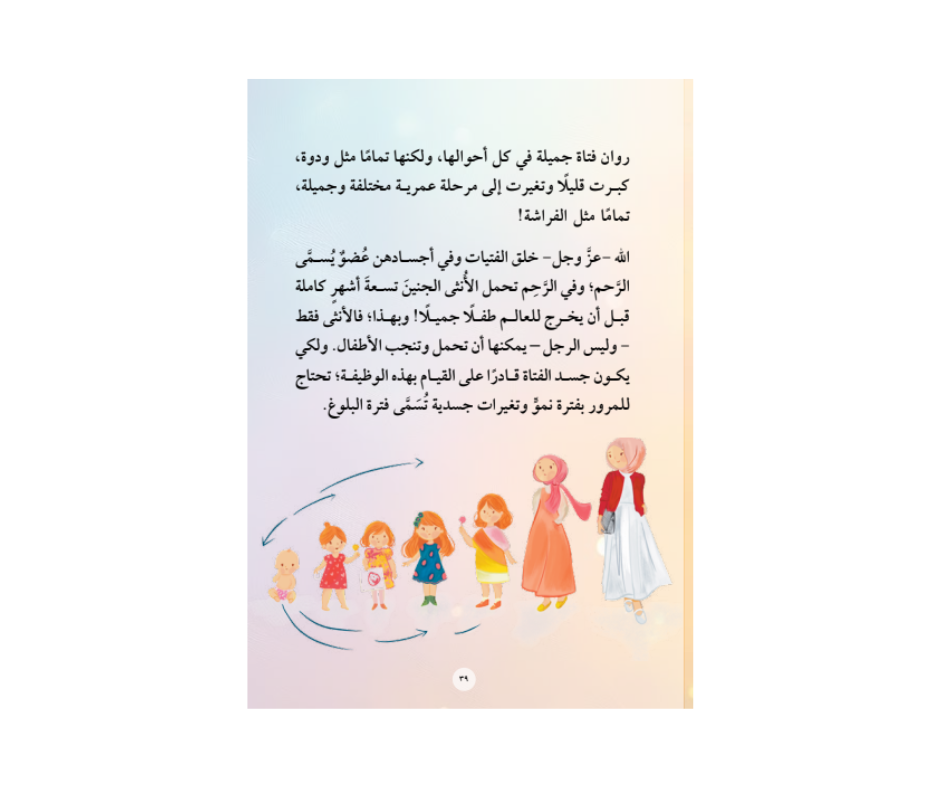 في البداية تحضر صديقتها ندى في أحد الأيام وهي ترتدي الحجاب لتخبرهن أنها قد بلغت وأنه يجب عليها ارتداء الحجاب ومنع الصلاة والصيام في فترة الحيض،
