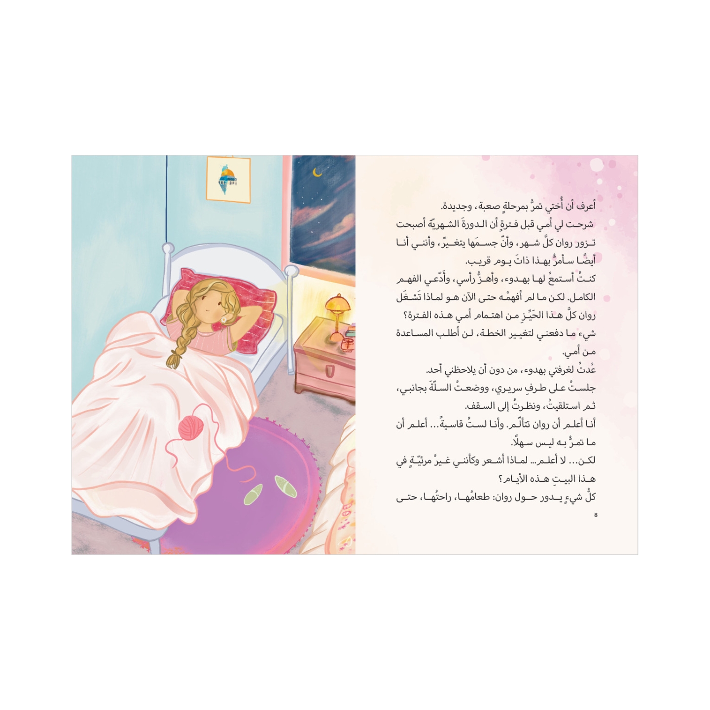 في هذه القصة الدافئة، نُرافِق «رحمة» وهي تُحاول أن تفهم التغيّر… في جسدها، وفي علاقتها بأختها، وفي مكانها في هذا العالَم.