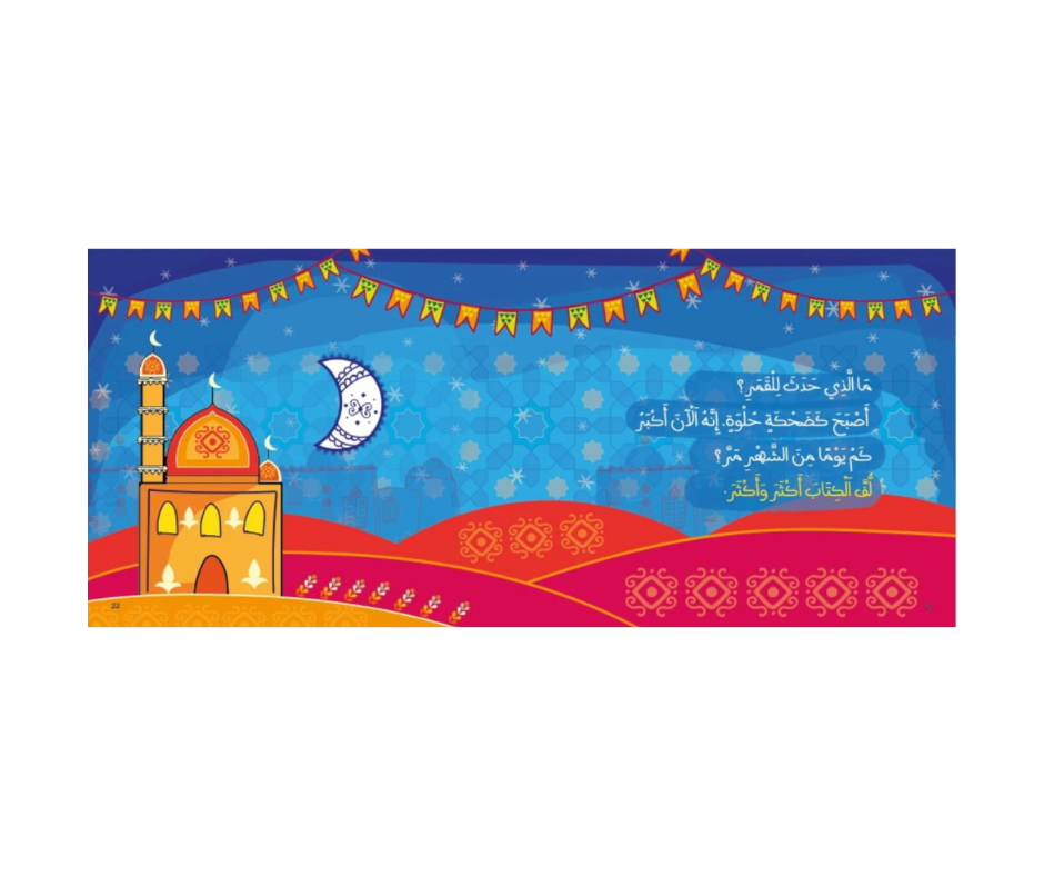 في هذه القصة، سوف يدق أطفالنا على الطبلة مع المسحراتي، ويقلِّبون قمر الدين، ويرشون السكر على كحك العيد